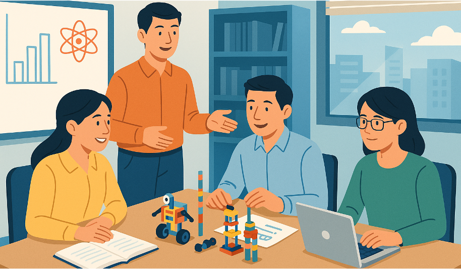 Thứ hai, chuẩn hoá nội dung chương trình bồi dưỡng theo hướng tích hợp liên ngành STEM, tập trung vào năng lực sư phạm thực hành thay vì chỉ truyền đạt kiến thức lý thuyết. Điều này phù hợp với yêu cầu của Chương trình Giáo dục phổ thông 2018 và các khung chuẩn nghề nghiệp giáo viên hiện hành, vốn nhấn mạnh năng lực tổ chức hoạt động học tập, tư duy liên ngành và đổi mới phương pháp dạy học.