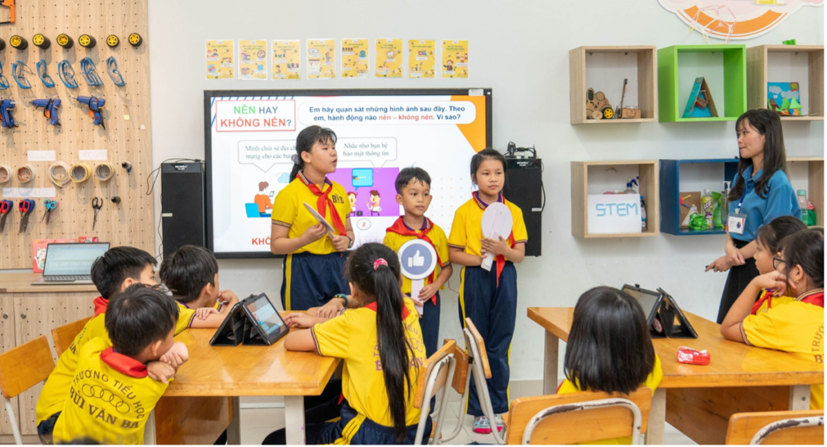 Tuy nhiên, không khó để nhận thấy những hạn chế trong thực tiễn triển khai. Hạ tầng công nghệ chưa đồng bộ, đặc biệt tại các vùng nông thôn, miền núi, hải đảo. Không ít học sinh chưa có thiết bị học tập cá nhân, việc tiếp cận Internet còn khó khăn, dẫn đến nguy cơ bất bình đẳng số. Đội ngũ giáo viên vẫn chưa được đào tạo chuyên sâu về giáo dục kỹ năng số. Nhiều giáo viên quen với việc sử dụng thiết bị công nghệ ở mức cơ bản nhưng còn lúng túng khi tổ chức hoạt động học tập nhằm phát triển tư duy số, an toàn số hay sáng tạo số cho học sinh. Bản thân học sinh cũng mới dừng lại ở việc sử dụng thiết bị số cho nhu cầu giải trí hoặc học tập đơn giản, trong khi năng lực khai thác, sáng tạo và bảo vệ an toàn cá nhân trong môi trường mạng chưa được chú trọng đúng mức.