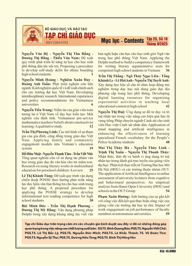 Quý độc giả có thể đọc nội dung từng bài báo trên hệ thống xuất bản mở của Tạp chí Giáo dục tại địa chỉ: