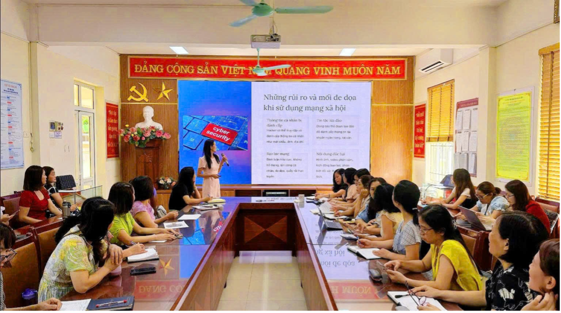Buổi tập huấn về sử dụng mạng xã hội an toàn, văn minh cho giáo viên Tiểu học tạo trường Tiểu học Nam Trung Yên (Hà Nội) (Ảnh: Trường Tiểu học Nam Trung Yên)