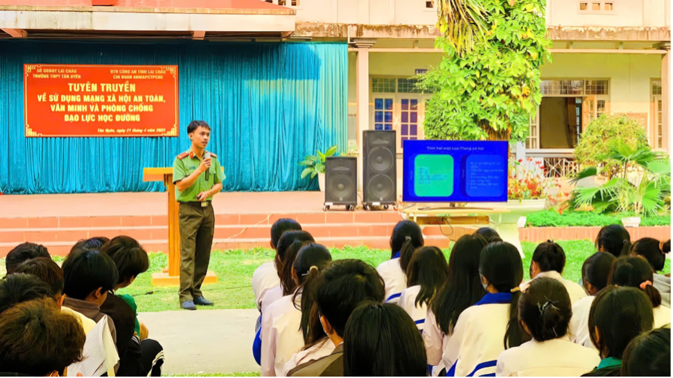 Buổi tuyên truyền về sử dụng mạng xã hội an toàn, văn minh tại trường THPT Tân Uyên (Lai Châu) (Ảnh: THPT Tân Uyên)