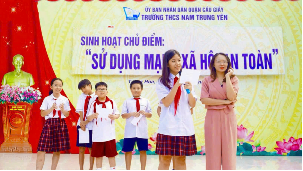 Cô và trò trường THCS Nam Trung Yên (Hà Nội) trong buổi sinh hoạt chủ điểm “Sử dụng mạng xã hội an toàn” (Ảnh: THCS Nam Trung Yên)