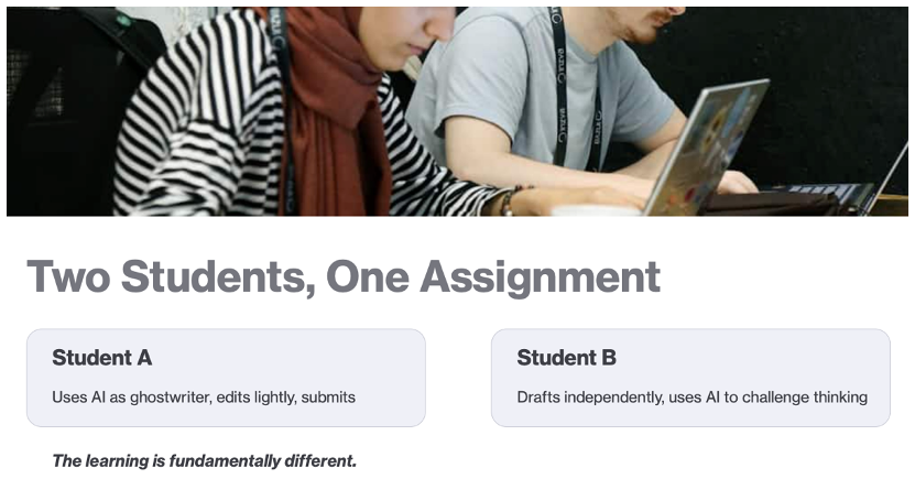 ❝Hai bài luận có thể giống nhau về hình thức, nhưng quá trình học tập đằng sau thì khác biệt căn bản: một bên để AI thay thế tư duy, bên kia coi AI như một bạn đồng hành trong quá trình suy nghĩ.❞