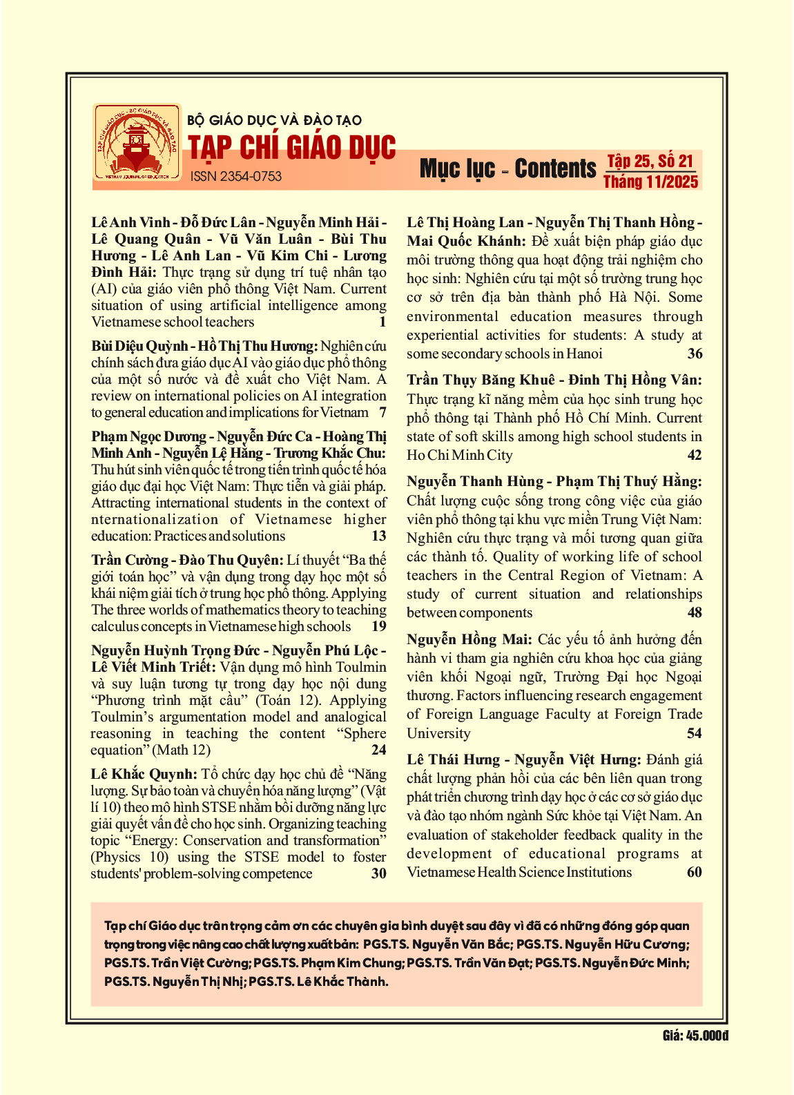 Quý độc giả có thể đọc nội dung từng bài báo trên hệ thống xuất bản mở của Tạp chí Giáo dục tại địa chỉ: