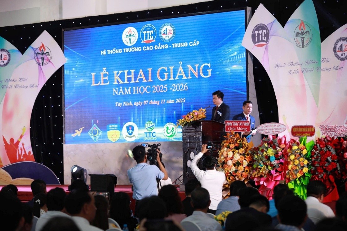 Ngày 07/11/2025 vừa qua, tại Trường Cao đẳng Công nghệ và Du lịch (Tây Ninh), Hệ thống Ba Nhà trường gồm Trường Cao đẳng Công nghệ và Du lịch, Trường Cao đẳng Nguyễn Tất Thành và Trường Trung cấp Công nghệ và Du lịch đã long trọng tổ chức Lễ Khai giảng năm học 2025–2026 tại cơ sở chính ở tỉnh Tây Ninh.