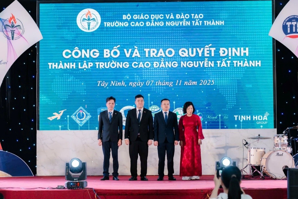 Cũng trong khuôn khổ buổi lễ, đã công bố Quyết định thành lập Trường Cao đẳng Nguyễn Tất Thành và công nhận ông Bùi Quang Tâm giữ chức Hiệu trưởng.