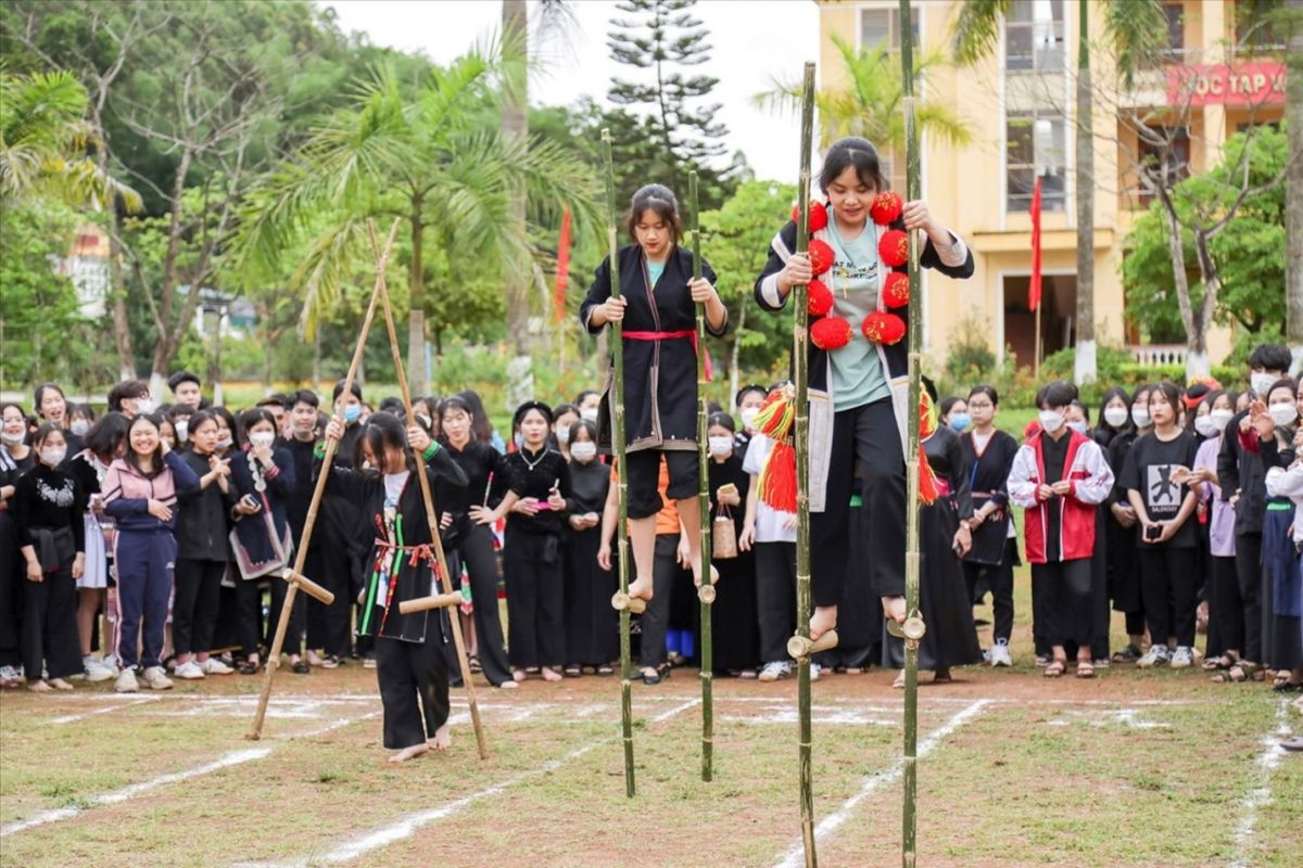 Hoạt động giáo dục di sản văn hóa được lồng ghép vào chương trình học tập tại Trường Phổ thông Dân tộc nội trú THPT tỉnh Tuyên Quang. Ảnh: Việt Hà