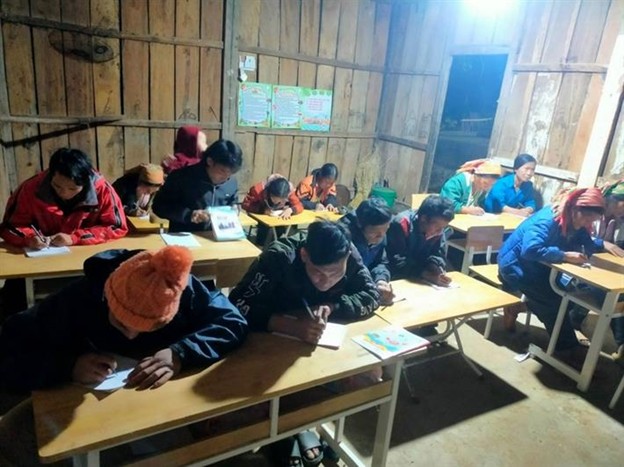 Lớp học xóa mù chữ tại Lai Châu. (Ảnh: Bộ GD-ĐT)