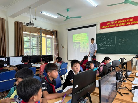 Học sinh Trường Phổ thông dân tộc bán trú Tiểu học và THCS Trung Chải, xã Pa Tần, Lai Châu trong giờ học môn Tin học. Nguồn GDTĐ