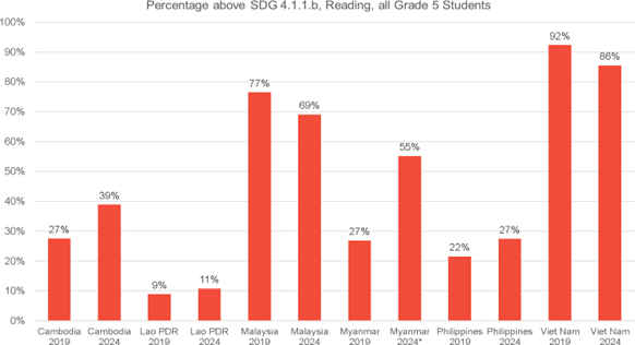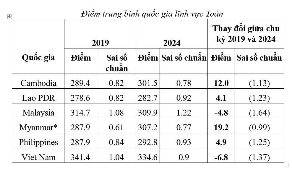 Theo báo cáo Ban Thư ký SEAMEO công bố, học sinh lớp 5 ở khu vực có giữ ổn định kết quả Đọc hiểu và tăng lên một tỷ lệ nhỏ ở kết quả Toán học.