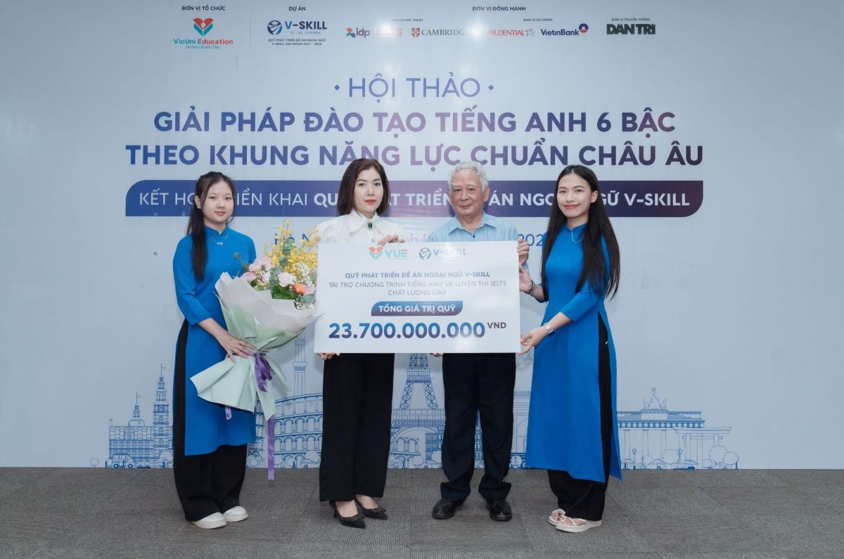 Quỹ V-Skill có tổng giá trị tài trợ đạt mức 23,7 tỷ đồng, hỗ trợ tối đa 70% học phí cho chương trình đào tạo tiếng Anh trực tuyến (IELTS, giao tiếp) cho người học trên toàn quốc. Chương trình có sự tham gia của các cá nhân và tổ chức uy tín như: