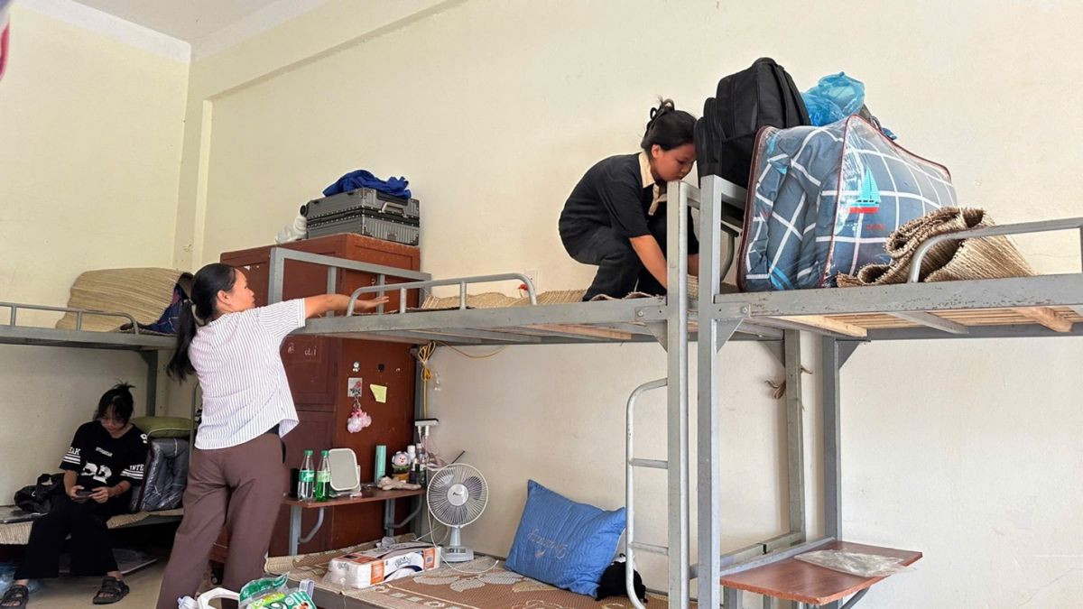 Phụ huynh cùng sắp xếp nơi ở trong ký túc xá của học sinh Trường PT Dân tộc NT - THPT Bắc Kạn (nay là Thái Nguyên). Ảnh: Báo Thái Nguyên