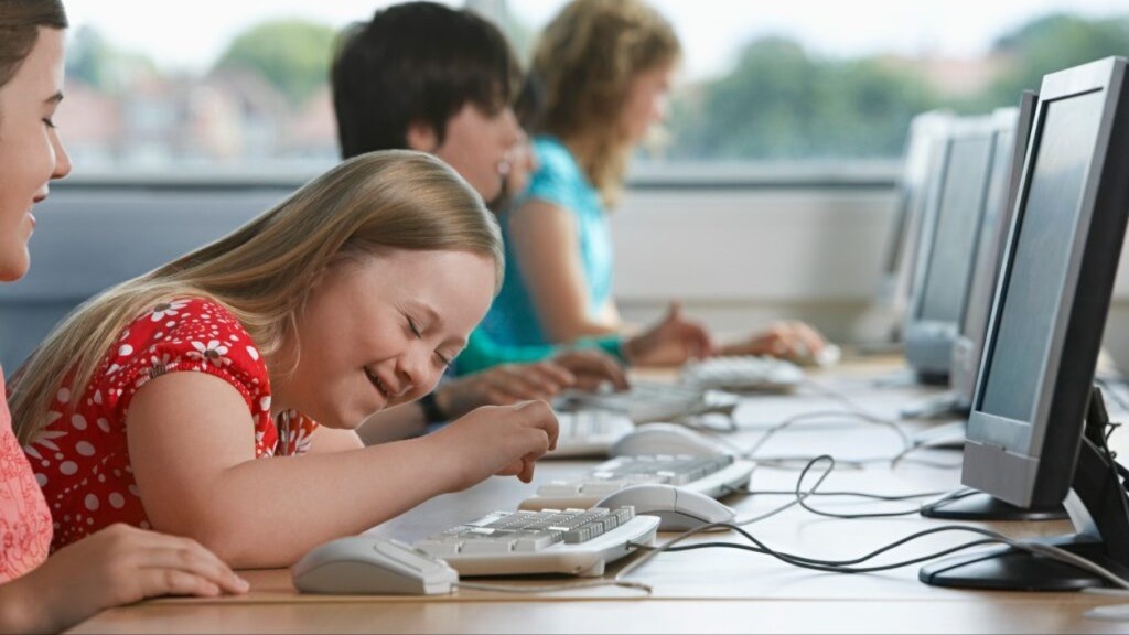 Công nghệ hỗ trợ và thiết bị thích ứng giúp học sinh có nhu cầu đặc thù tham gia học tập cùng bạn bè trong môi trường lớp học chung, qua đó mở rộng khả năng tiếp cận và thúc đẩy giáo dục hòa nhập (Nguồn ảnh: Down Syndrome International)