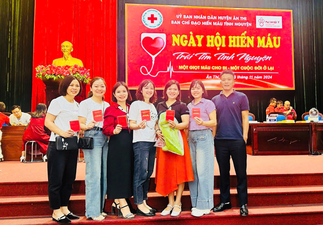 Các đồng chí CBGV tham gia hiến máu tình nguyện.