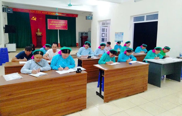 Cô giáo Lan cho biết: Khi mới nhận nhiệm vụ đứng lớp tôi cũng rất lo, vì không biết với độ tuổi cao như vậy, học viên có tiếp thu được không. Khó nhất là học viên người dân tộc thiểu số, sử dụng nhiều ngôn ngữ, phong tục, tập quán khác nhau, nên việc dạy chữ khó hơn. Ban đầu học thì cũng khó lắm, tay ai cũng cứng đơ tưởng không viết được, thế nhưng sau một thời gian học tập, bà con tiến bộ thấy rõ, có thể đọc, viết được. Bà con rất chăm chỉ đến lớp, chịu khó nghe giáo viên uốn nắn. Sau vài ngày học làm quen còn bỡ ngỡ, bây giờ ai cũng tự tin, mạnh dạn, xung phong lên bảng.