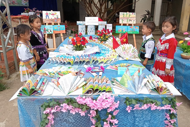 Trưng bày sách và truyện, hoạt động sáng tạo giúp học sinh giao lưu và đọc tiếng Việt nhiều hơn là cách làm sáng tạo của trường PTDTBT Tiểu học Hồng Thu (Sìn Hồ, Lai Châu)