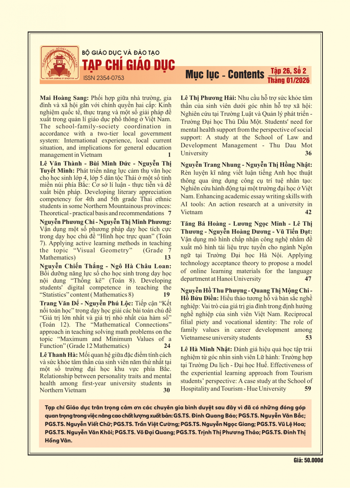 Quý độc giả có thể đọc nội dung từng bài báo trên hệ thống xuất bản mở của Tạp chí Giáo dục tại địa chỉ: