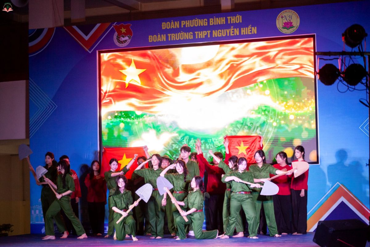 Tiết mục văn nghệ do các học sinh của Đoàn trường THPT Nguyễn Hiền biểu diễn